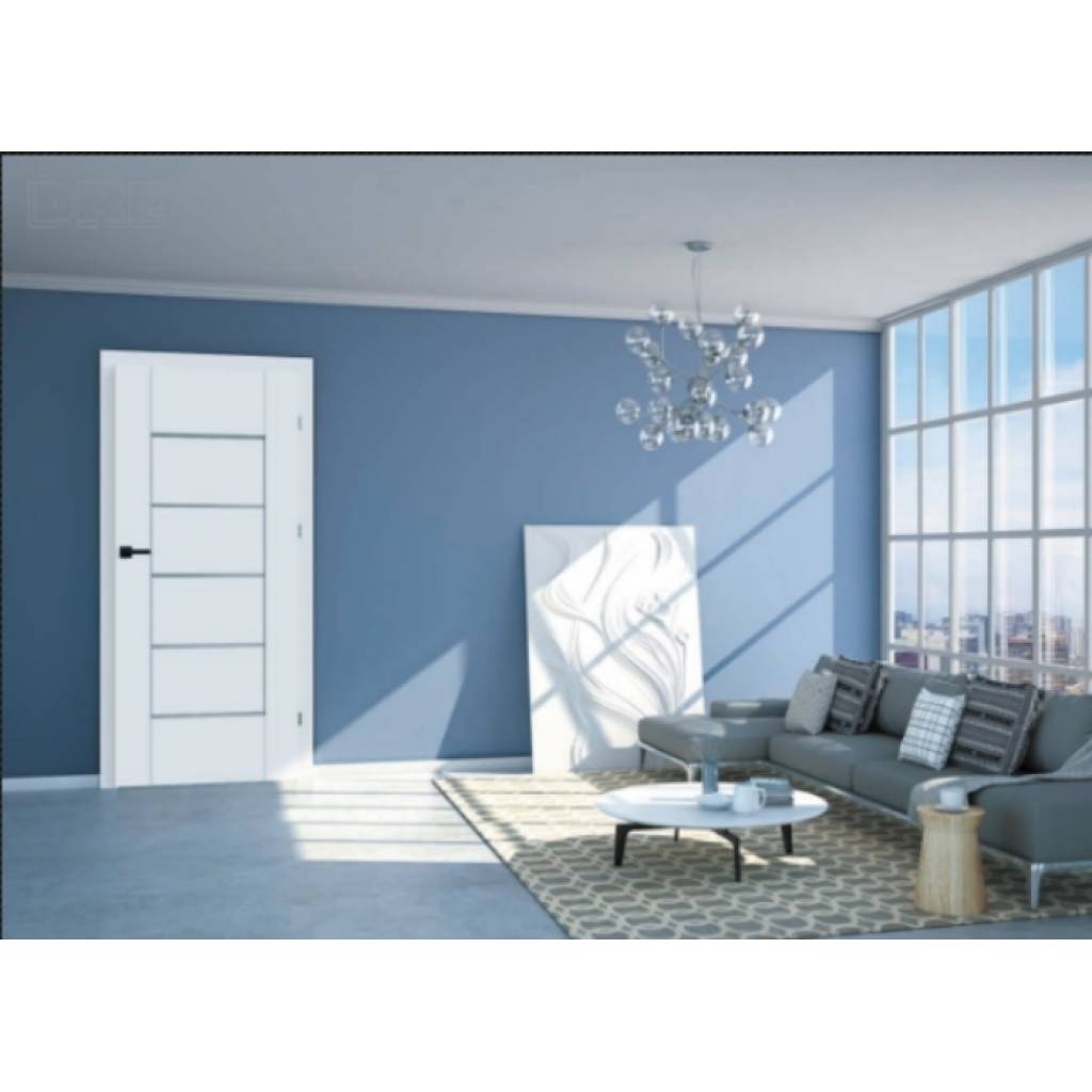 Nowoczesny styl, subtelne przeszklenia. Drzwi wewnętrzne DRE Lumio 9 charakteryzują się nowoczesnym wzornictwem, które podkreślają poziome mleczne przeszklenia, zapewniające delikatne doświetlenie wnętrza i zachowanie prywatności. Solidna konstrukcja ramowa MDF oraz wysokiej jakości matowa okleina DRE-Cell (Biel Alpejska) gwarantują trwałość, odporność na zarysowania oraz łatwe czyszczenie.