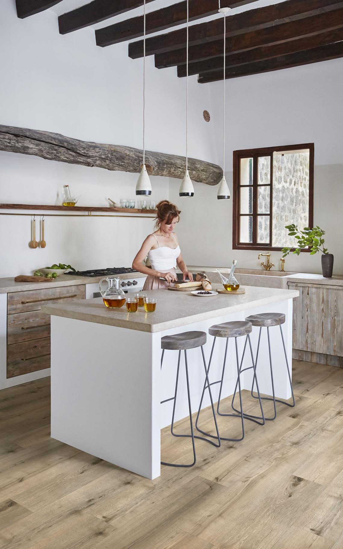 Kährs Sabino Ranch Collection to podłoga winylowa klasy premium, która łączy nowoczesną technologię LVT z naturalnym urokiem drewna inspirowanego stylem rustykalnym. Odcień Sabino wyróżnia się stonowaną, lekko chłodniejszą tonacją drewna, dzięki czemu świetnie komponuje się z wnętrzami w stylu nowoczesnym, skandynawskim czy industrialnym.